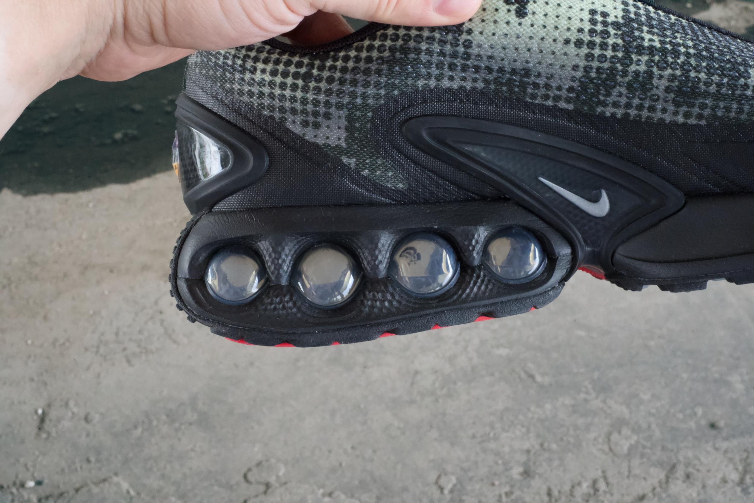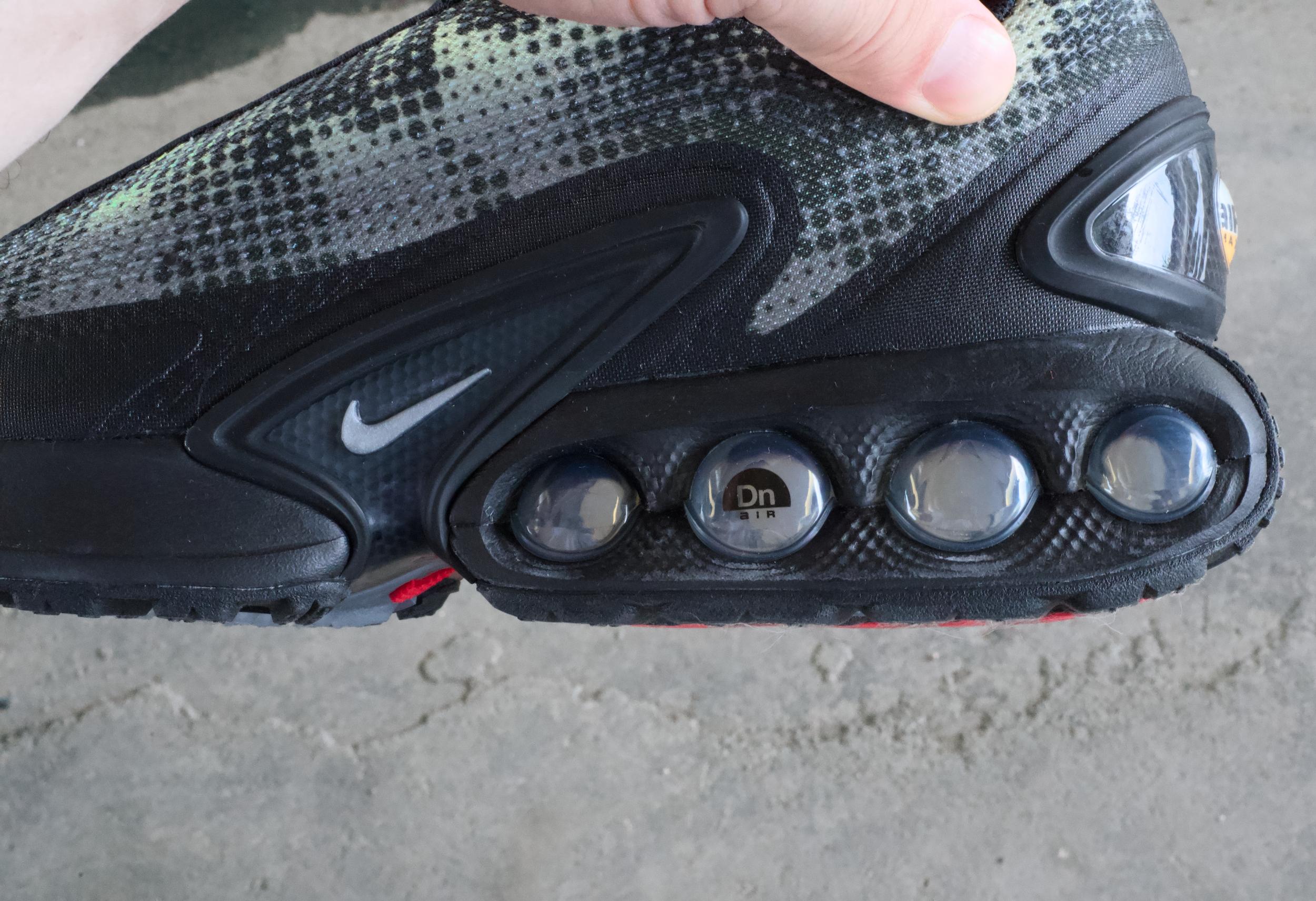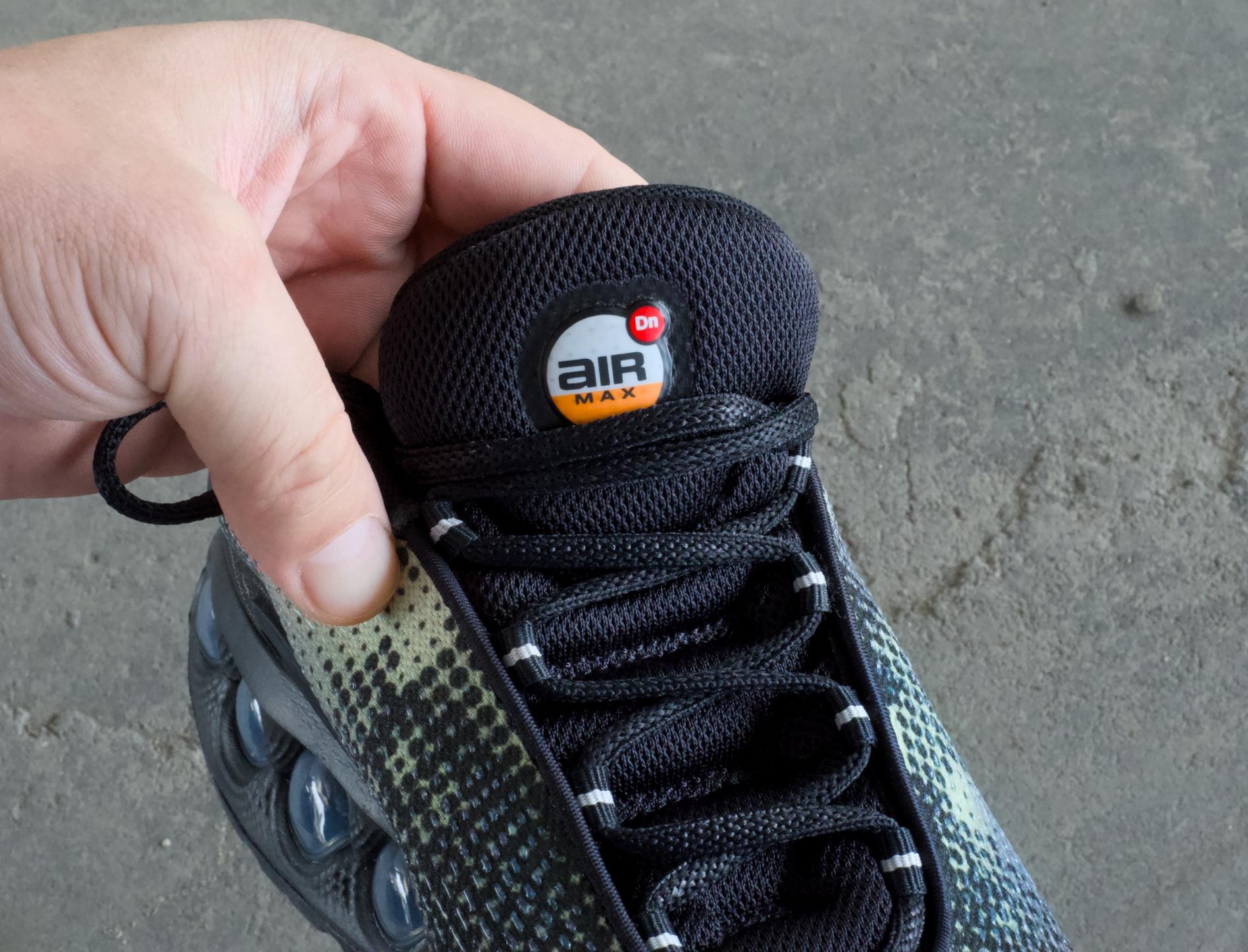 Главная особенность Air Max DN — это переработанная система амортизации Dynamic Air. В отличие от предшественников, здесь используются четыре трубчатые воздушные камеры, доходящие до середины подошвы. Эта конструкция обеспечивает адаптивную амортизацию — система реагирует на давление в разных зонах стопы, перераспределяя воздух для оптимального комфорта. Такое распределение создаёт эффект естественного переката стопы при ходьбе и беге, снижая нагрузку на суставы.