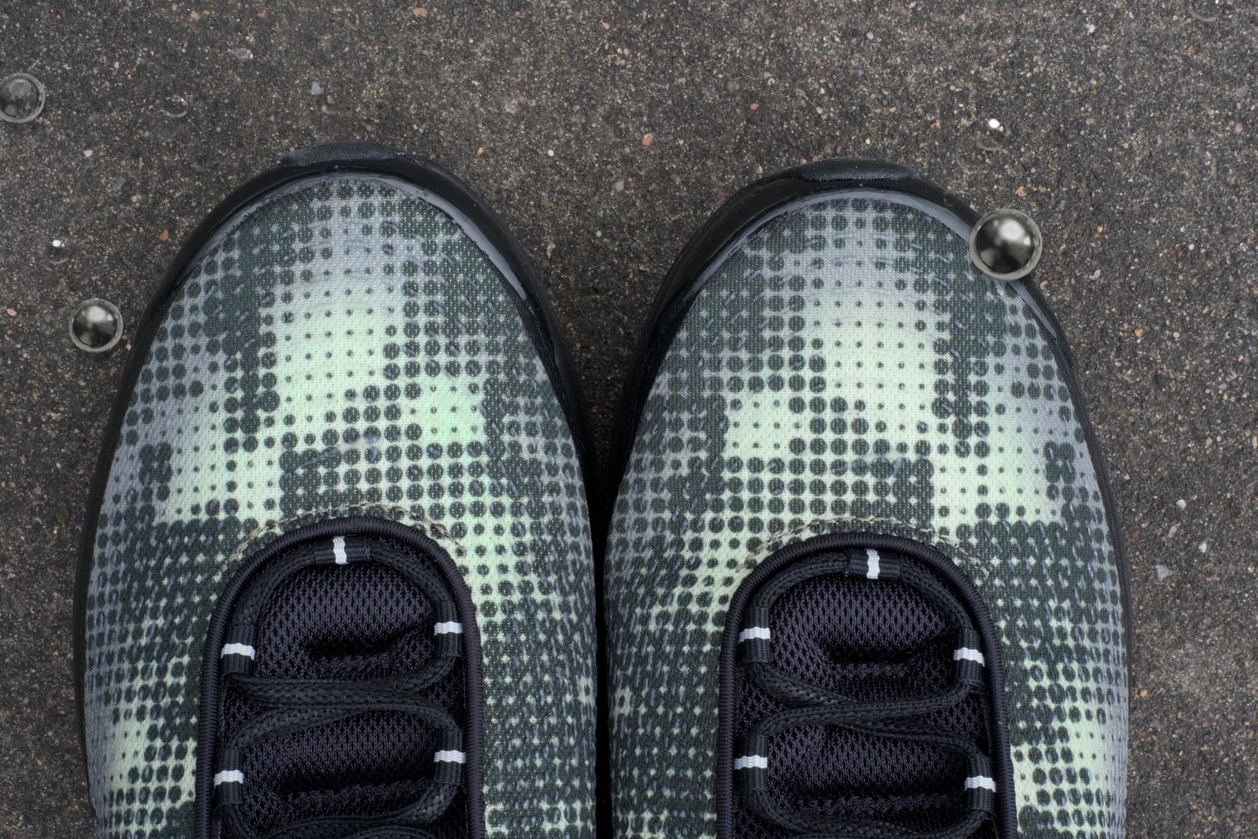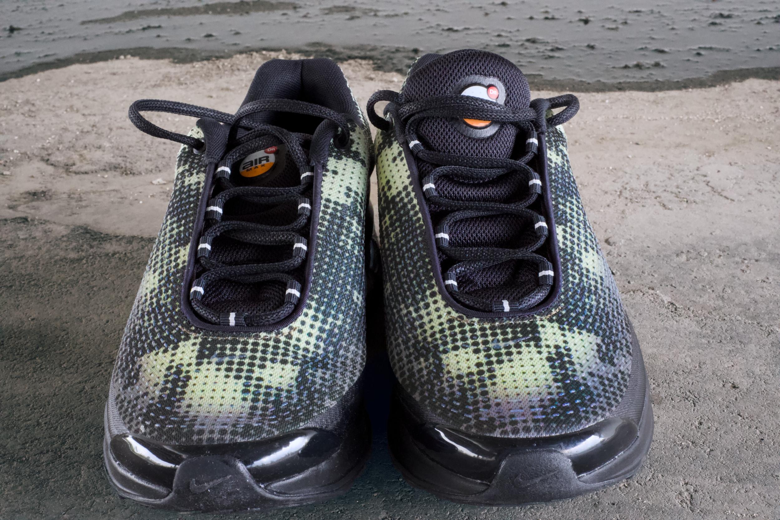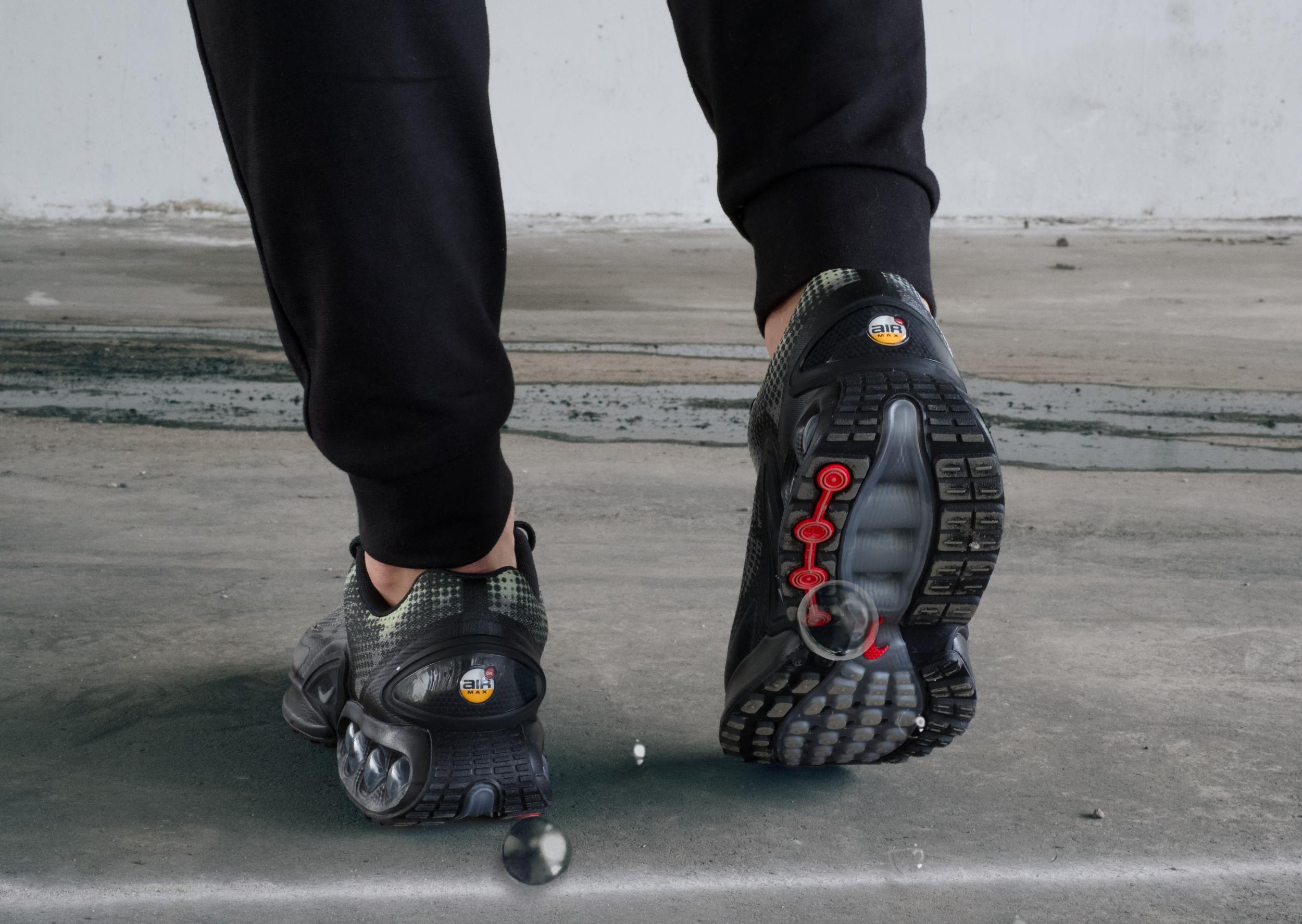 Главная особенность Air Max DN — это переработанная система амортизации Dynamic Air. В отличие от предшественников, здесь используются четыре трубчатые воздушные камеры, доходящие до середины подошвы. Эта конструкция обеспечивает адаптивную амортизацию — система реагирует на давление в разных зонах стопы, перераспределяя воздух для оптимального комфорта. Такое распределение создаёт эффект естественного переката стопы при ходьбе и беге, снижая нагрузку на суставы.