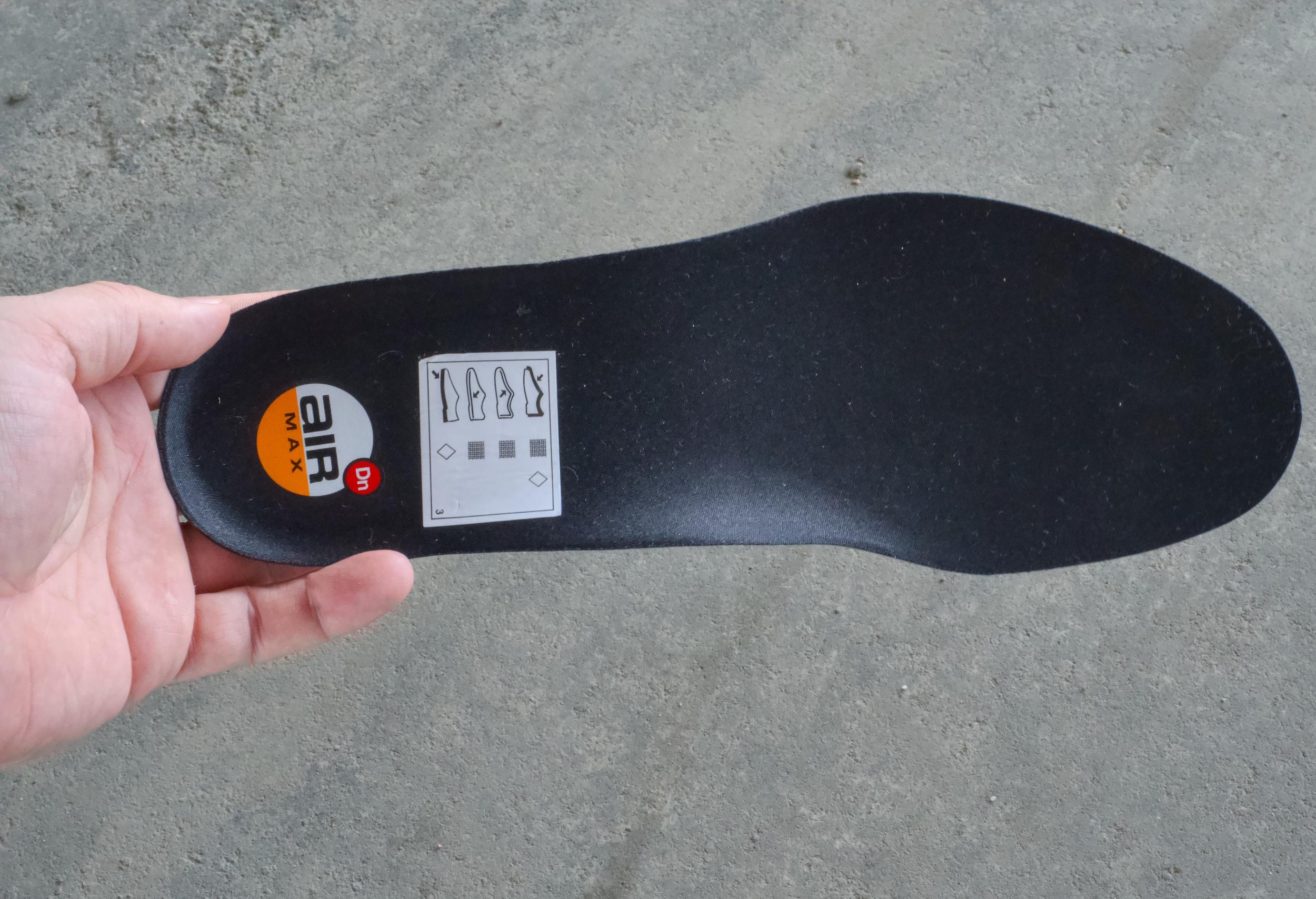 Неплохая стелька с выраженным бортом в области пятки и подъемом под акру стопы. А еще мне очень понравилась гладкая ткань, которой отделана стелька — чистить ее легче, чем стандартную сетку. Только вот объема в пяточной зоне стельке не хватает, хотя тут за объем явно отвечает подошва и воздушная подушка, так что может оно и не надо. Изготовлена стелька из материала DURAPONTEX.