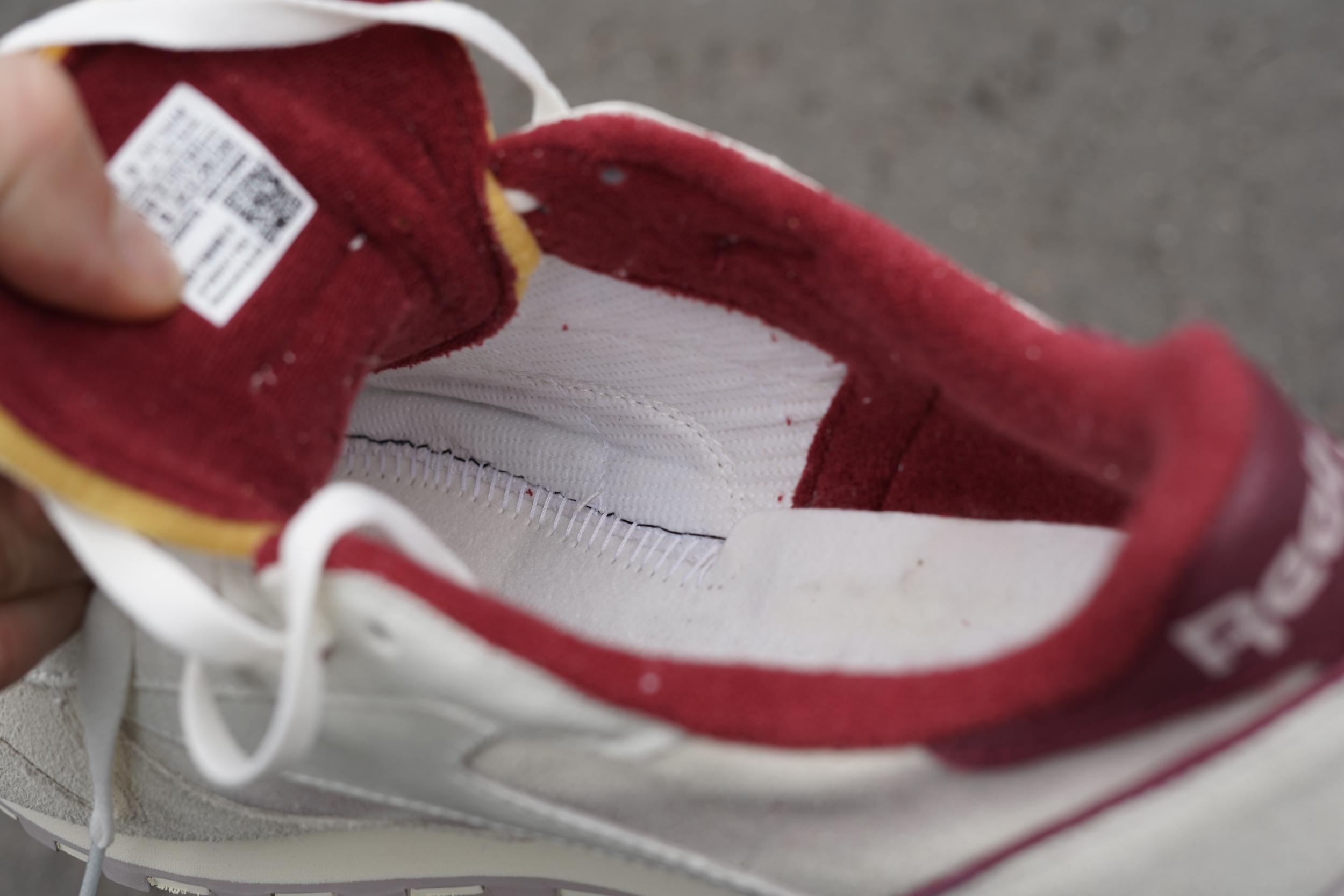 Изнутри задник кроссовок отделан текстилем с ворсом, напоминающим микрофибру. Это та самая винтажная махровая подкладка, которой раньше отделывали эту модель. Передняя часть кроссовок отделана чуть более жесткой подкладкой-сеточкой.