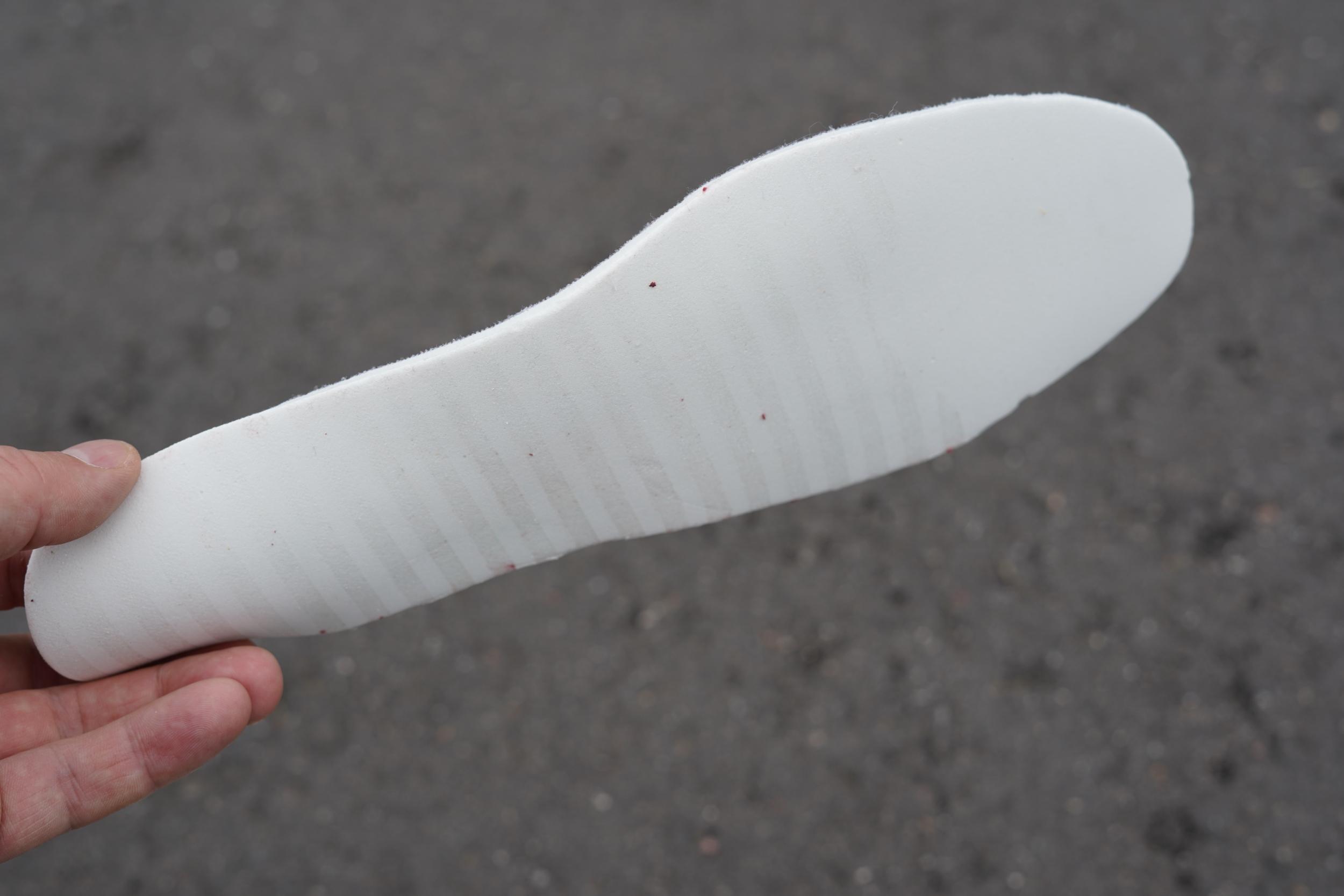 Вкладная стелька приклеена к основной, форма стельки самая стандартная. Материал стельки — ЭВА, верх отделан текстилем.