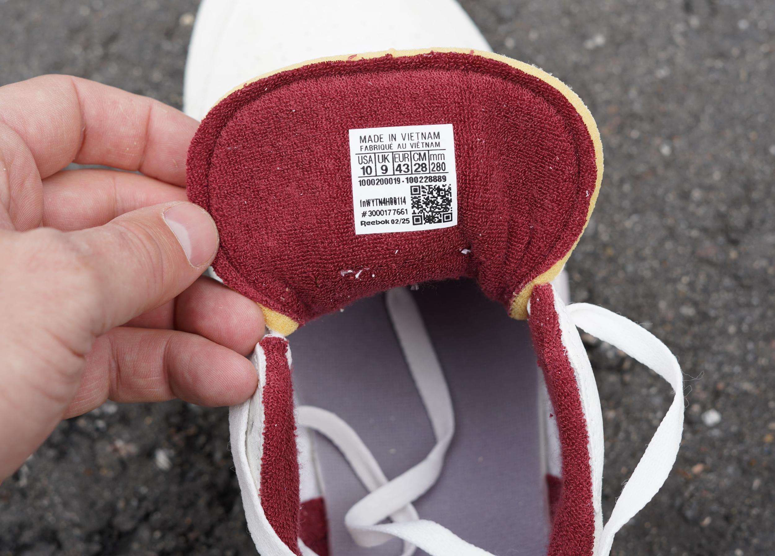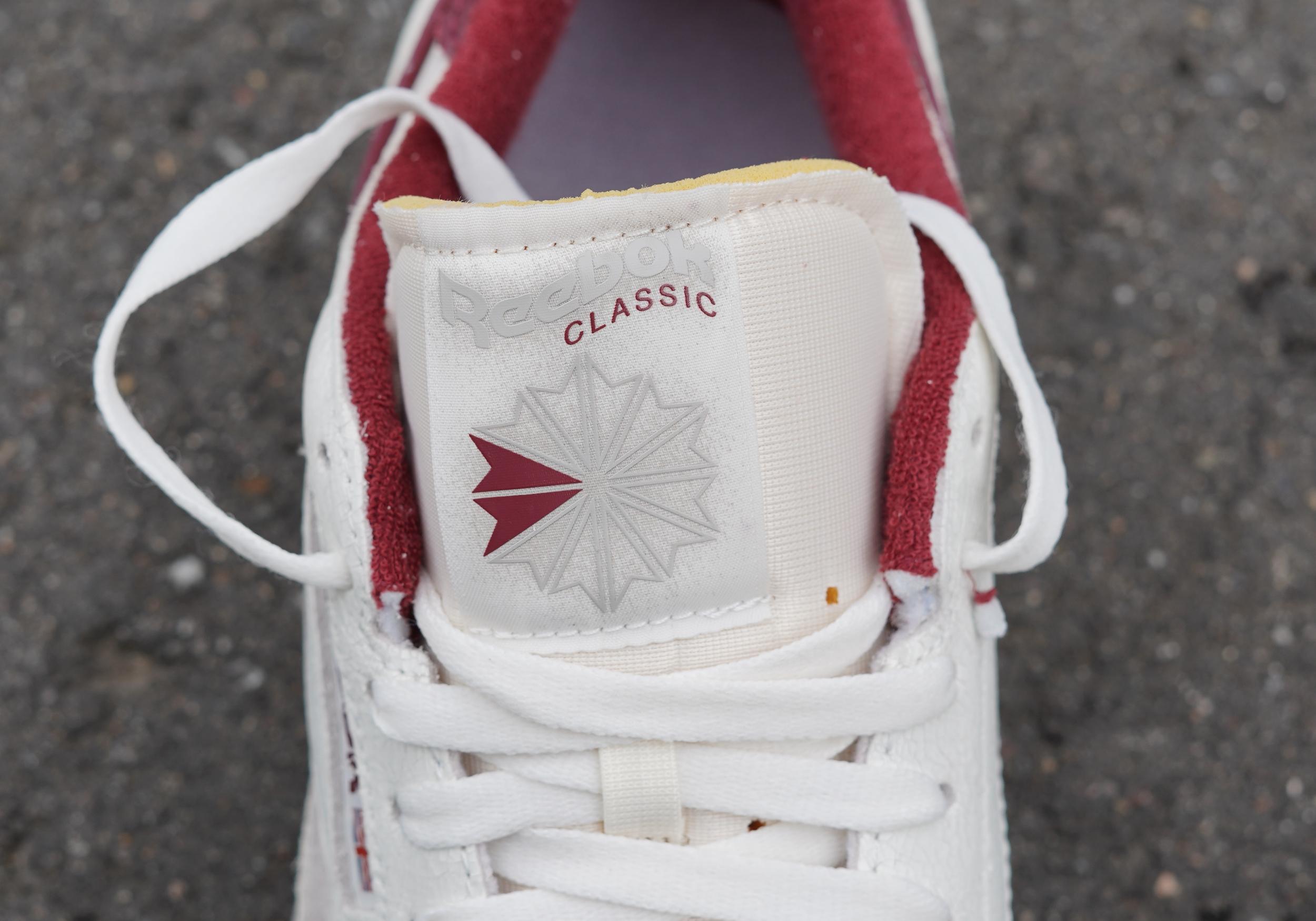 Название бренда расположено на внешней боковине кроссовок и заднике, а на язычке кроссовок размещен архивный логотип. На боковине также можно увидеть традиционный британский флаг, который долгое время был частью брендинга Reebok, а также классический большой логотип из перекрестных полос. Этот лого выполнен из кожи, а также краски, нанесенной на замшу. Смотрится бомбически.