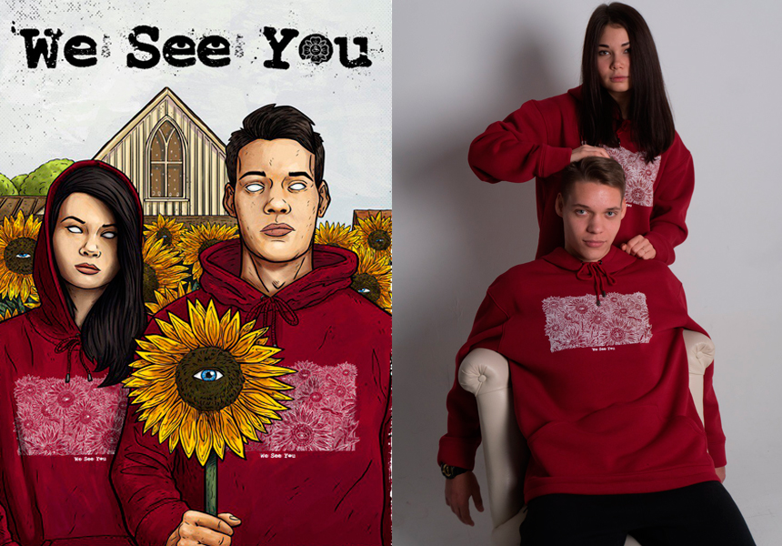 Очень плодотворным выдался 2017 год. Была выпущена коллекция футболок, посвящённая американской уличной культуре 70-ых годов, скейтбордингу и эпохе зарождения Хип-хопа, с оптимистичным и поддерживающим призывом «Не парься!», затем коллекция свитшотов с развязной и задорной надписью: «Фрикуй пока молодой». Все вещи имели классический силуэт и свободный, дарящий свободу движениям, крой. А вот в последней коллекции «We See You» ребята решили поэкспериментировать и поиграть с силуэтом, разработав фирменный оригинальный силуэт кофты с капюшоном. А источником вдохновения для создания принта с полем «глазастых» подсолнухов послужил рассказ Стивена Кинга «Дети Кукурузы».